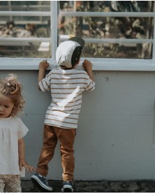 This soft tee-shirt is made of 100% organic cotton. Perfect to wear with our shorts, jersey pants or overalls.