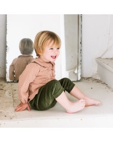Timeless jumpsuit in soft rust gingham fabric. With its one pocket at the front and two at the back, this playsuit is perfect for your little one to hide their little treasures.