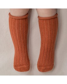 Adorable rust unisex knee high socks with non slip soles in soft cotton.