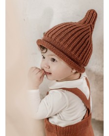 Adorable knitted bonnet with roll cuff and pixie design to keep them cosy.