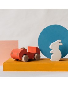 This cute handcrafted, hand-painted push along wooden bunny car is made of natural maple wood with rounded edges safe enough for little hands.