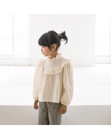 Lovely blouse in ultra soft organic muslin cotton fabric. Gorgeous ruffles at the front, at the back and on the collar.