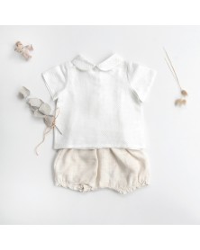 Lovely and timeless bodysuit with Peter Pan collar in soft organic cotton. Perfect to wear with our romper and bloomers.