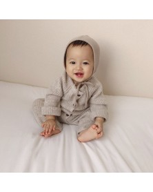 Classic and unisex knit jumpsuit with buttons at the front for easy changing.