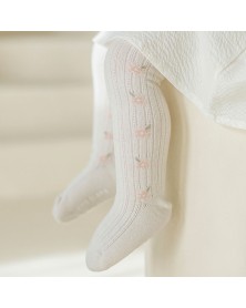 Adorable tights with pretty pink floral pattern on the side with non slip soles in soft cotton.