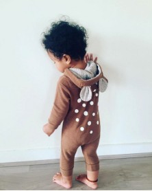 Unisex and unique cute jumpsuit. Adorable fawn ears attached to the hood.