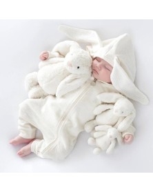 Unisex and unique cute bunny jumpsuit. Adorable rabbit hears attached to the hood.