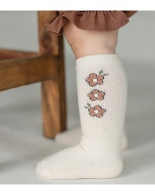 Adorable tights with pretty pink floral pattern on the side with non slip soles in soft cotton.