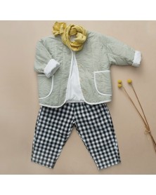 Timeless unisex gingham pants in natural cotton fabric. Comfortable stretch waist.