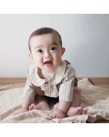 Timeless check shirt with long sleeves and adorable Peter Pan collar.